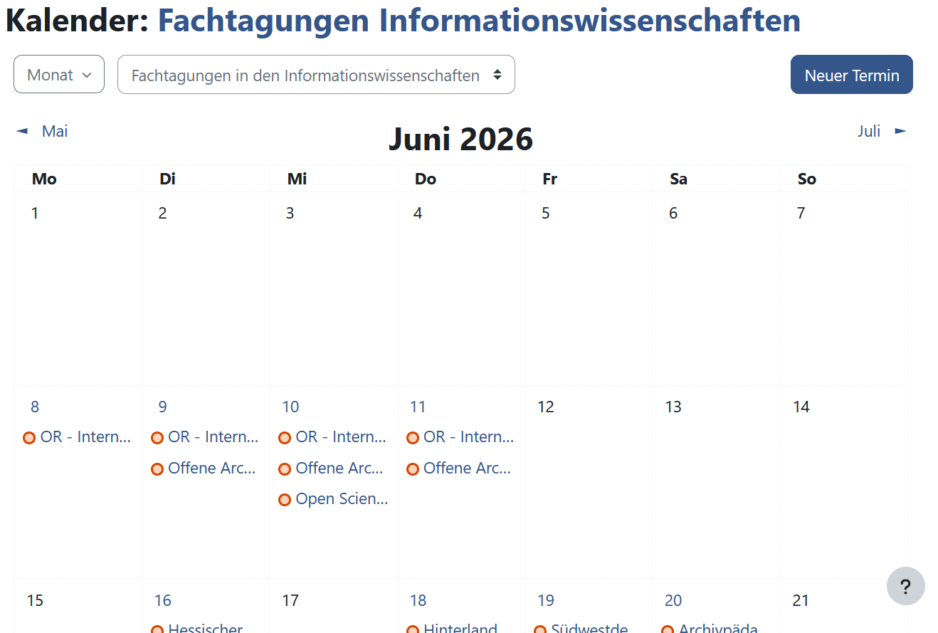 weitere Tagungskalender und Konferenzdatenbanken zu den Informationswissenschaften
