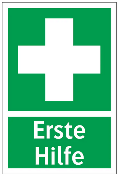 Themen u. a.: Grundpflichten, Ersthelfer, Rettungskette, Erste-Hilfe-Maßnahmen, Nachweis Erste-Hilfe-Leistung/Unfallanzeige, Erste-Hilfe-Kästen, Rettungszeichen.